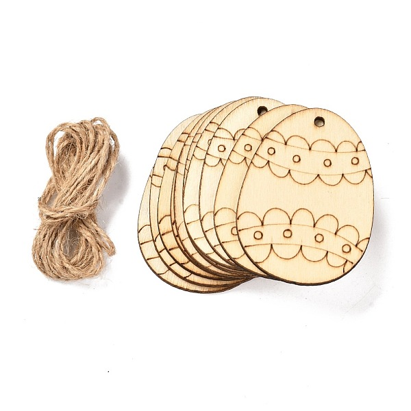 PandaHall DIY Crafts Easter Egg Shape Cutouts Pendants, with Hemp Rope, Wave Pattern, 74~84x58~68x2~2.5, Hole: 2.5~3mm, 10pcs/bag Wood... Price: $3.66 | PandaHall