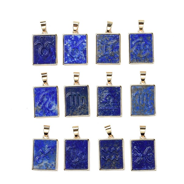 PandaHall 12Pcs 12 Styles Natural Lapis Lazuli Pendants, Rectangle Charms with Twelve Constellations, with Rack Plating Light Gold Tone... Price: $0 | PandaHall
