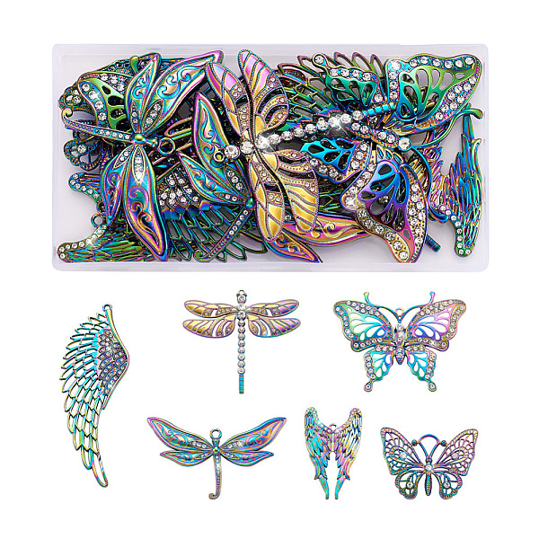 PandaHall Fashewelry 12Pcs 6 Style Rack Plating Rainbow Color Alloy Big Pendants, with Crystal Rhinestone, Dragonfly & Wing & Butterfly... Price: $0 | PandaHall