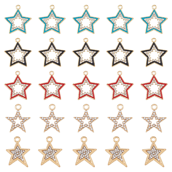 PandaHall SUPERFINDINGS 50Pcs 5 Style Alloy Crystal Rhinestone Pendants, with Enamel, Star Charms, Mixed Color, 19~24x15~22x1.5~2mm, Hole... Price: $12.87 | PandaHall