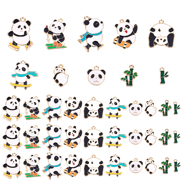 PandaHall 40Pcs 10 Style Alloy Enamel Pendants, Light Gold, Panda Shape and Bamboo Stick, Mixed Color, 31x22x2mm, Hole: 2mm, 4pcs/style... Price: $8.25 | PandaHall
