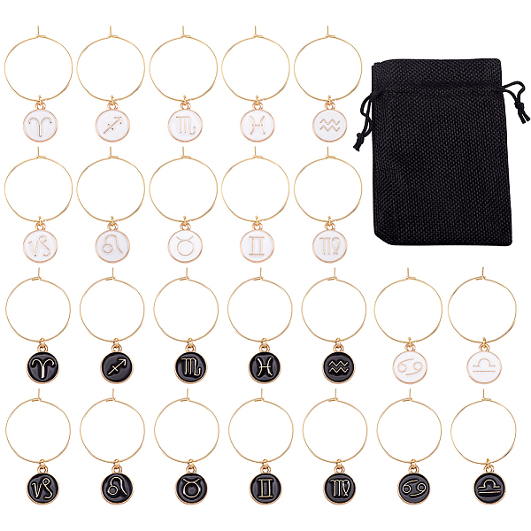 PandaHall 24Pcs 24 Style Alloy Enamel Wine Glass Charms, with 316 Surgical Stainless Steel Hoop Earring Findings, Flat Round with Twelve... Price: $4.33 | PandaHall