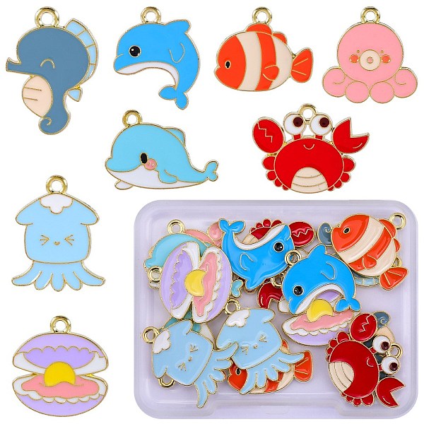 PandaHall 24Pcs 8 Style Sea Animal Alloy Enamel Pendants, Light Gold, Whale/Cuttlefish/Sea Horse/Dolphin/Octopus/Fish/Crab/Shell Charm... Price: $8.14 | PandaHall