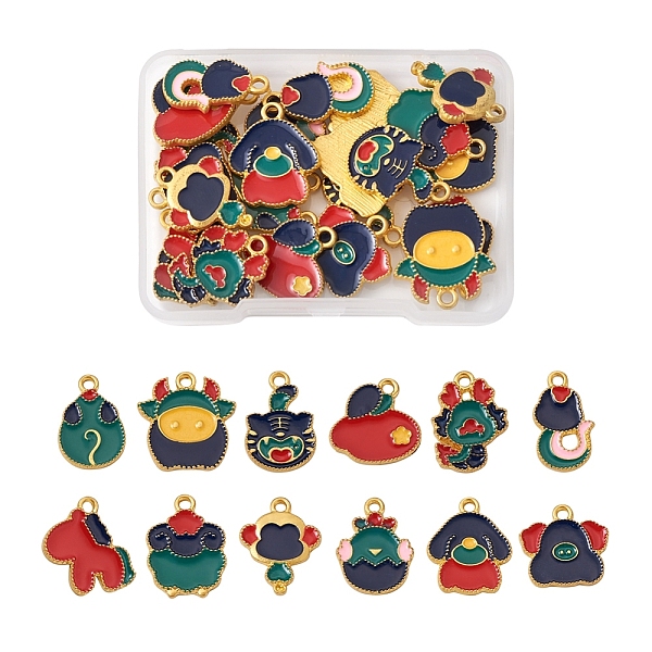 PandaHall Spritewelry 24Pcs 12 Style Rack Plating Alloy Enamel Pendants, Golden, Chinese Zodiac, Mixed Color, 16~20x12~19x2mm, Hole: 1.8~2mm... Price: $8.23 | PandaHall
