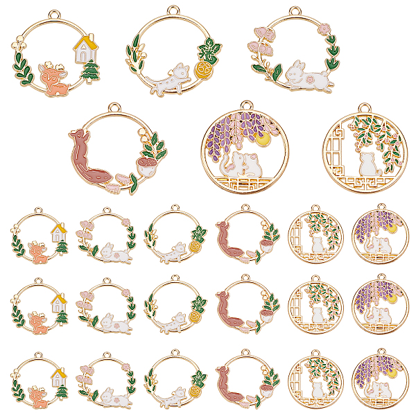PandaHall 6 Style Animal Enamel Charms, 24pcs Alloy Cat Rabbit Squirrel Pendant Round Easter Spring Summer Charms for DIY Necklace Bracelet... Price: $8.59 | PandaHall