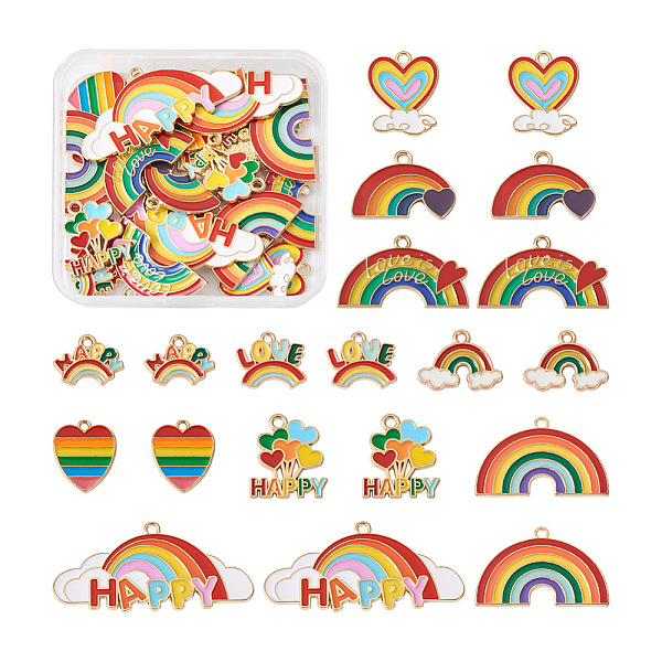 PandaHall Jewelry 40Pcs 10 Style Zinc Alloy Enamel Pendants, Light Gold, Rainbow, Mixed Color, 11.5~21x15~47.5x1~1.5mm, Hole: 1.4~2mm... Price: $11.84 | PandaHall