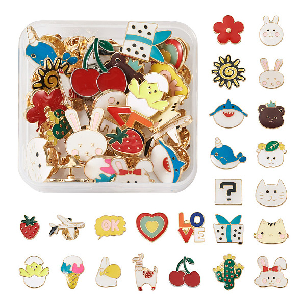 PandaHall Kissitty 24Pcs 24 Style Bear & Heart & Word & Sun & Gift Box Enamel Pins, Animal Alloy Brooches for Backpack Clothes, Light Gold... Price: $14.3 | PandaHall