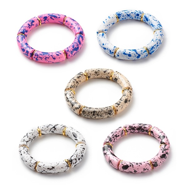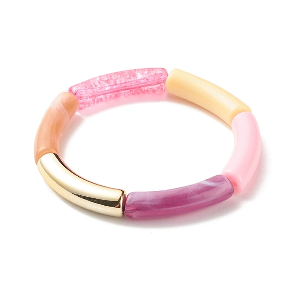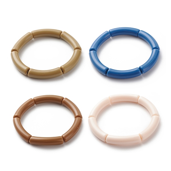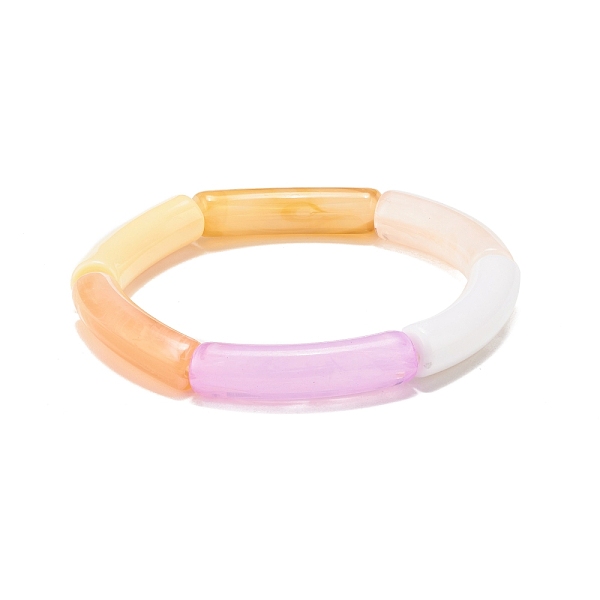 PandaHall Acrylic Curved Tube Beaded Stretch Bracelet for Women, Mixed Color, Inner Diameter: 2-1/4 inch(5.6cm) Acrylic Multicolor Price: $14.4 | PandaHall