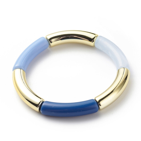 PandaHall Acrylic Curved Tube Beaded Stretch Bracelet for Women, Marine Blue, Inner Diameter: 2-1/8 inch(5.3cm) Acrylic Price: $12.28 | PandaHall
