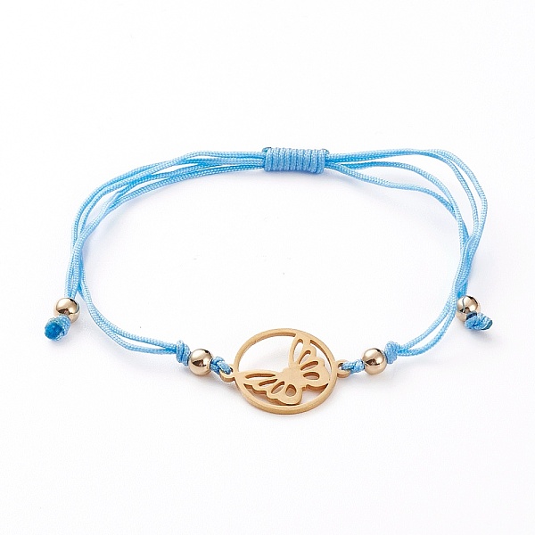 PandaHall Adjustable Nylon Cord Braided Bead Bracelet, with 201 Stainless Steel Links and Brass Beads, Ring with Butterfly, Golden, Light... Price: $21.42 | PandaHall