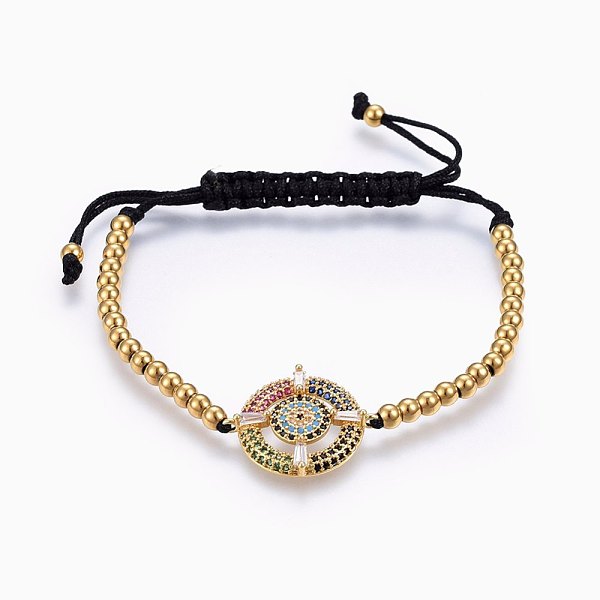 PandaHall Adjustable 304 Stainless Steel Braided Beaded Bracelets, with Nylon Cord and Brass Micro Pave Cubic Zirconia Links, Flat Round... Price: $21.21 | PandaHall
