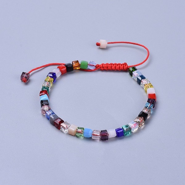 PandaHall Adjustable Nylon Cord Braided Bead Bracelets, with Faceted Transparent Glass Cube Beads, Red, 2-1/8 inch~3-1/8 inch(5.4~8cm) Glass... Price: $11.23 | PandaHall