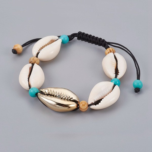 PandaHall Adjustable Nylon Cord Braided Bracelets, with Cowrie Shell Beads and Electroplated Sea Shell Beads, Wood Beads, Synthetic... Price: $11.85 | PandaHall