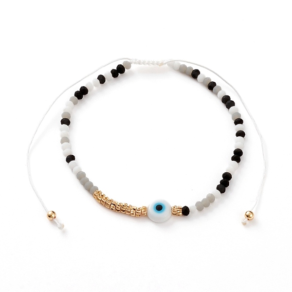 PandaHall Adjustable Nylon Cord Braided Bead Bracelets, with Evil Eye Lampwork Beads, Textured Brass Beads and Frosted Glass Beads, Black... Price: $20.53 | PandaHall