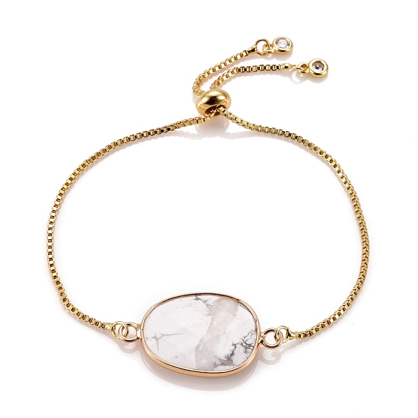 PandaHall Adjustable Brass Bolo Bracelets, Slider Bracelets, with Cubic Zirconia and Gemstone Links, Oval, Golden, Inner Diameter: 2-3/4... Price: $17.03 | PandaHall