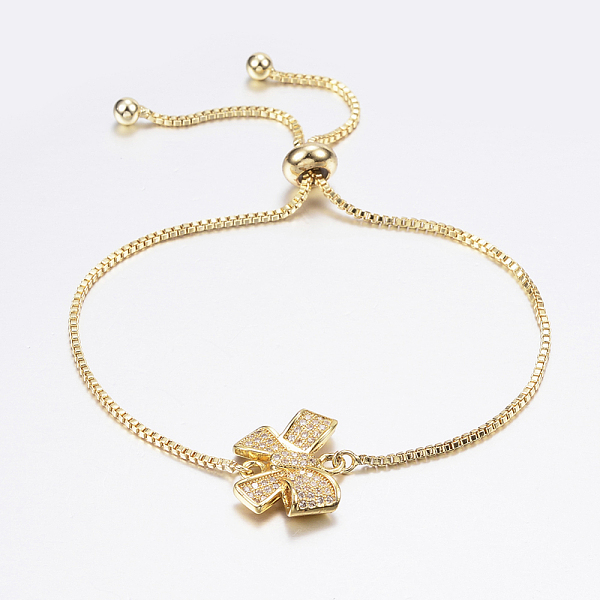 PandaHall Adjustable Brass Bolo Bracelets, Slider Bracelets, with Cubic Zirconia and Box Chains, Bowknot, Golden, 10-1/4 inch(260mm) Cubic... Price: $15.47 | PandaHall