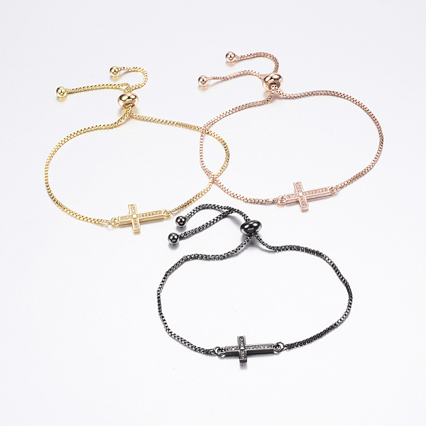 PandaHall Adjustable Brass Bolo Bracelets, Slider Bracelets, with Cubic Zirconia and Box Chains, Cross, Mixed Color, 10-1/4 inch(260mm)... Price: $10.12 | PandaHall
