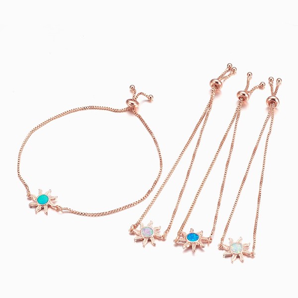 PandaHall Adjustable Brass Bolo Bracelets, Slider Bracelets, with Synthetic Opal, Sun, Rose Gold, Mixed Color, 9-7/8 inch(25cm), Link... Price: $12.24 | PandaHall