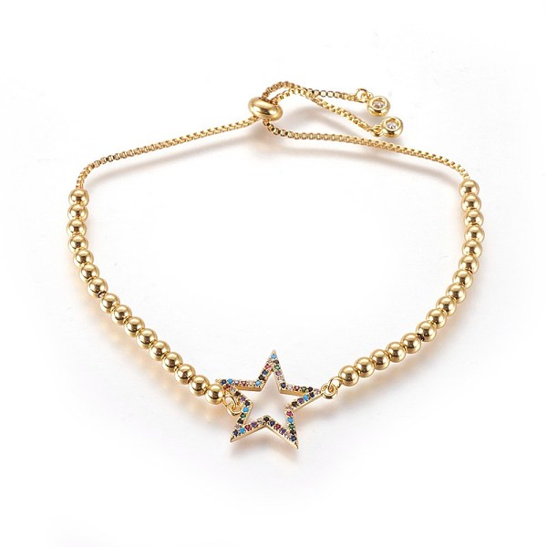 PandaHall Adjustable Brass Micro Pave Cubic Zirconia Bolo Bracelets, Slider Bracelets, Box Chains, Packing Box, Star, Golden, 10-1/2 inch... Price: $9.49 | PandaHall