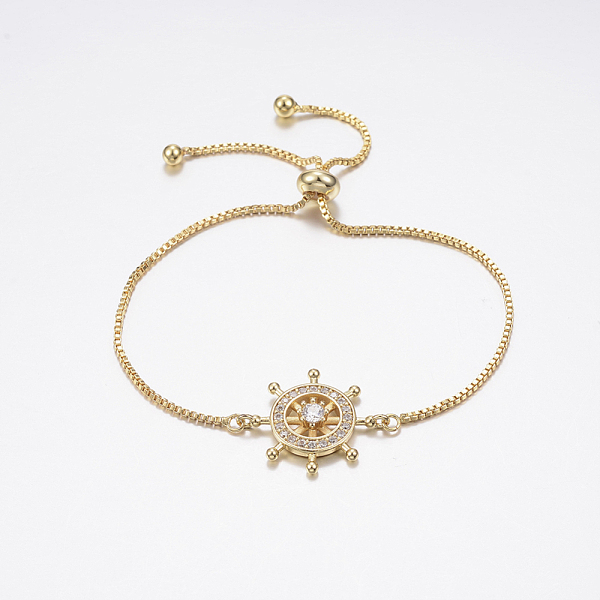 PandaHall Adjustable Brass Micro Pave Cubic Zirconia Bolo Bracelets, Slider Bracelets, with Brass Box Chains, Helm, Golden, 10-1/4 inch... Price: $5.27 | PandaHall