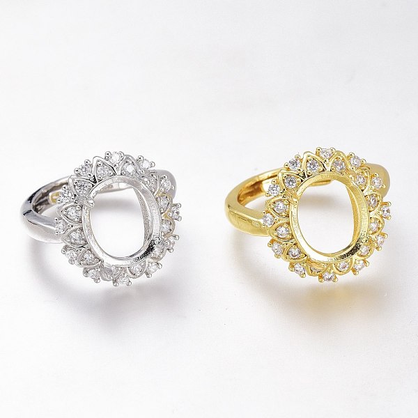 PandaHall Adjustable Brass Micro Pave Clear Cubic Zirconia Finger Ring Components, 4 Claw Prong Ring Settings, Long-Lasting Plated, Oval... Price: $8.11 | PandaHall