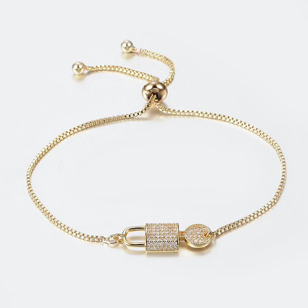 PandaHall Adjustable Brass Micro Pave Cubic Zirconia Bolo Bracelets, Slider Bracelets, Lock and Key, Golden, 10-1/4 inch(260mm), 1.2mm Cubic... Price: $11.75 | PandaHall
