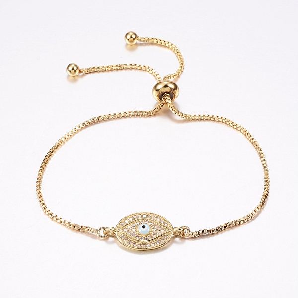 PandaHall Adjustable Brass Micro Pave Cubic Zirconia Bolo Bracelets, Slider Bracelets, with Brass Box Chains and Enamel, Oval with Eye... Price: $12.73 | PandaHall