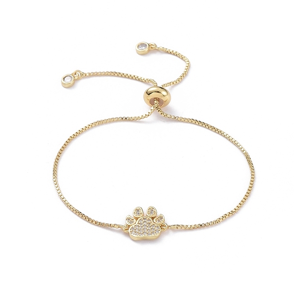 PandaHall Adjustable Brass Micro Pave Cubic Zirconia Slider Bracelets, Bolo Bracelets, with Cardboard Box, Dog Paw Print, Golden, 9-1/2 inch... Price: $14.49 | PandaHall