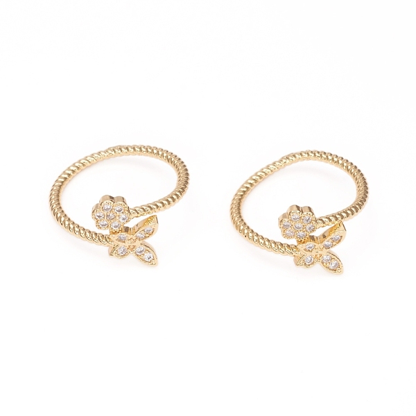 PandaHall Adjustable Brass Micro Pave Cubic Zirconia Cuff Rings, Open Rings, Long-Lasting Plated, Flower and Butterfly, Clear, Golden, Size... Price: $9.79 | PandaHall