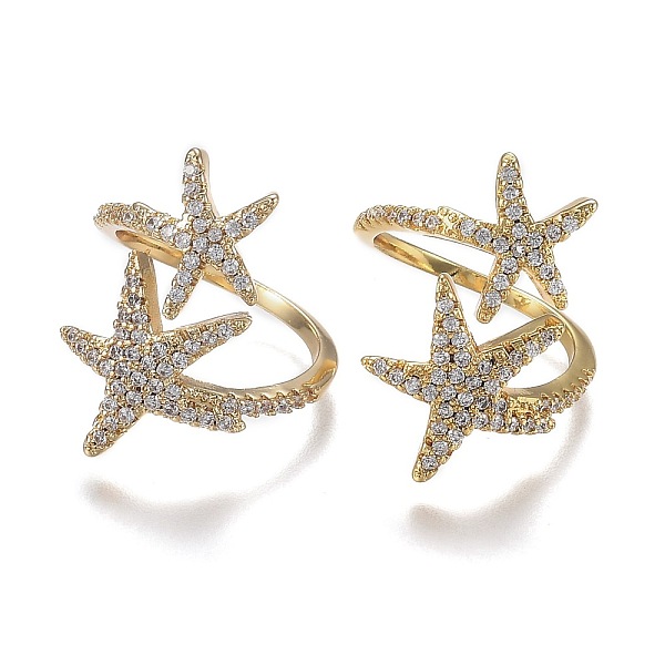 PandaHall Adjustable Brass Micro Pave Clear Cubic Zirconia Cuff Rings, Open Rings, Wide Band Rings, Long-Lasting Plated, Starfish, Real 18K... Price: $2.98 | PandaHall