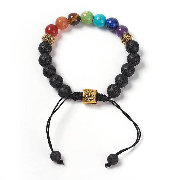 PandaHall Adjustable Nylon Thread Braided Bead Bracelets, with Lava Rock, Natural & Synthetic Mixed Stone, Alloy Finding, Antique Golden, 2... Price: $10.61 | PandaHall