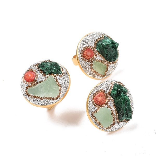 PandaHall Natural & Synthetic Mixed Gemstone Irregular Beaded Adjustable Ring with Crystal Rhinestone, Brass Half Round Wide Ring for Women... Price: $12.04 | PandaHall
