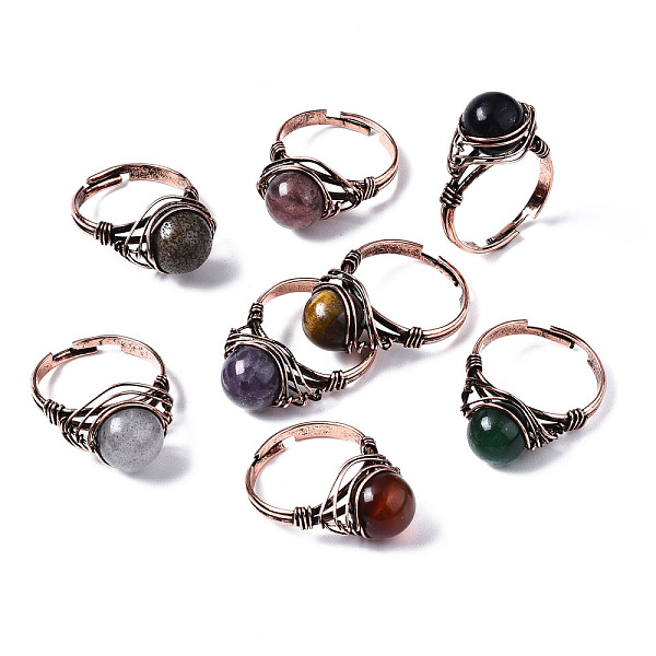 PandaHall Adjustable Natural & Synthetic Gemstone Round Finger Rings, with Red Copper Brass Findings, US Size 9(18.9mm) Mixed Stone None Price: $14.69 | PandaHall
