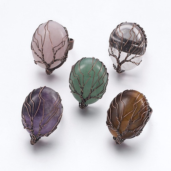 PandaHall Adjustable Natural & Synthetic Mixed Stone Finger Rings, with Red Copper Brass Findings, Oval, Size 8, 18mm Mixed Stone Price: $13.05 | PandaHall