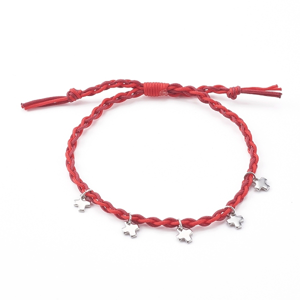 PandaHall Adjustable Nylon Thread Braided Bead Bracelets, with 304 Stainless Steel Cross Charms, Stainless Steel Color, Red, Inner Diameter... Price: $20.73 | PandaHall
