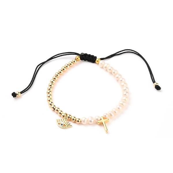 PandaHall Adjustable Nylon Thread Braided Bead Bracelets, with Natural Pearl Beads, Brass Beads, Brass Enamel Charms, Evil Eye & Cross... Price: $34.54 | PandaHall
