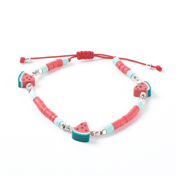 PandaHall Adjustable Nylon Thread Braided Bead Bracelets, with Polymer Clay Heishi Beads and Brass Cube Beads, Watermelon, Silver Color... Price: $13.42 | PandaHall