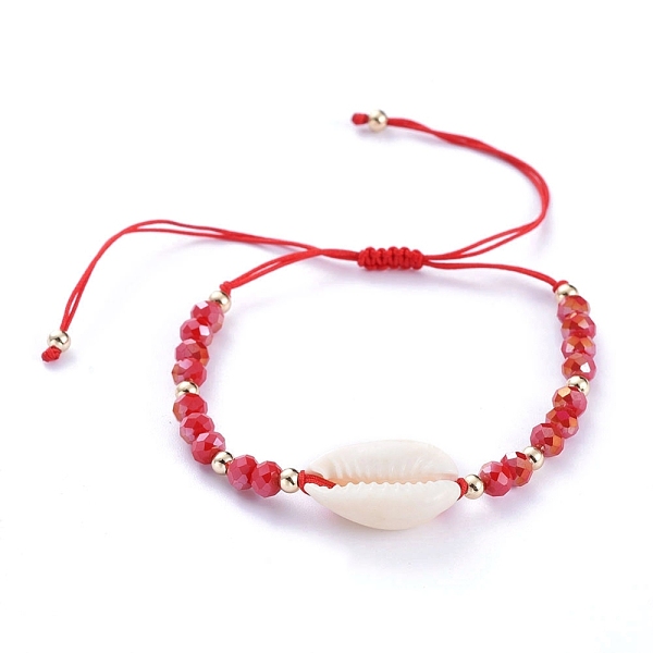 PandaHall Adjustable Nylon Thread Braided Bead Bracelets, with Natural Cowrie Shell Beads, Faceted Glass Beads and Brass Beads, Red, Inner... Price: $19.18 | PandaHall