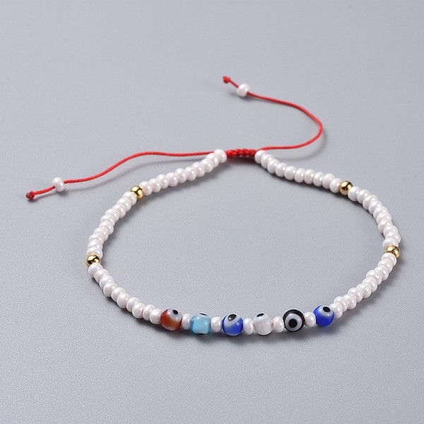 PandaHall Adjustable Nylon Thread Braided Beads Bracelets, with Handmade Evil Eye Lampwork Round Beads, Round Glass Seed Beads and Brass... Price: $11.01 | PandaHall