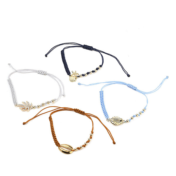 PandaHall Adjustable Nylon Thread Braided Bead Bracelets Sets, with Alloy Links and Round Brass Beads, Shell Shape & Starfish & Coconut Tree... Price: $11.87 | PandaHall