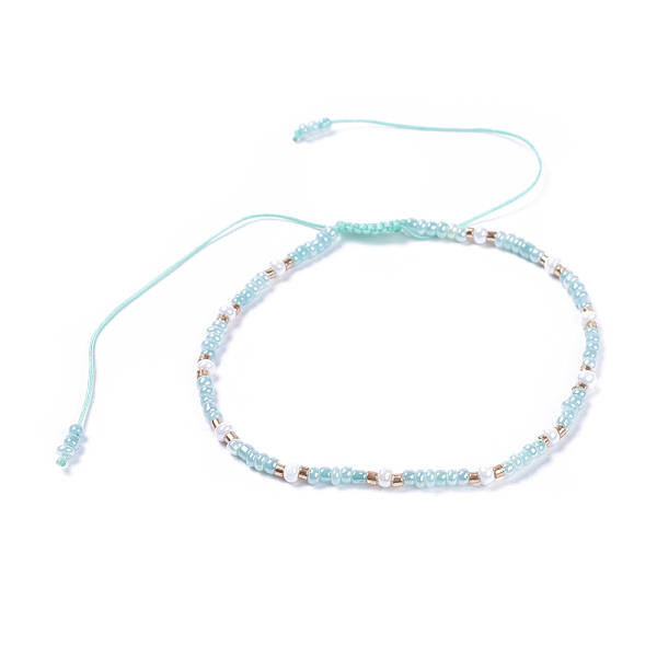 PandaHall Adjustable Nylon Thread Braided Beads Bracelets, with Glass Seed Beads and Grade A Natural Freshwater Pearls, Aqua, 2-1/8 inch... Price: $13.49 | PandaHall