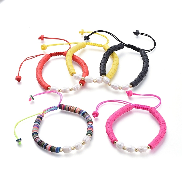 PandaHall Adjustable Nylon Thread Braided Bead Bracelets, with Natural Cultured Freshwater Pearls and Handmade Polymer Clay Beads, Brass... Price: $25.17 | PandaHall