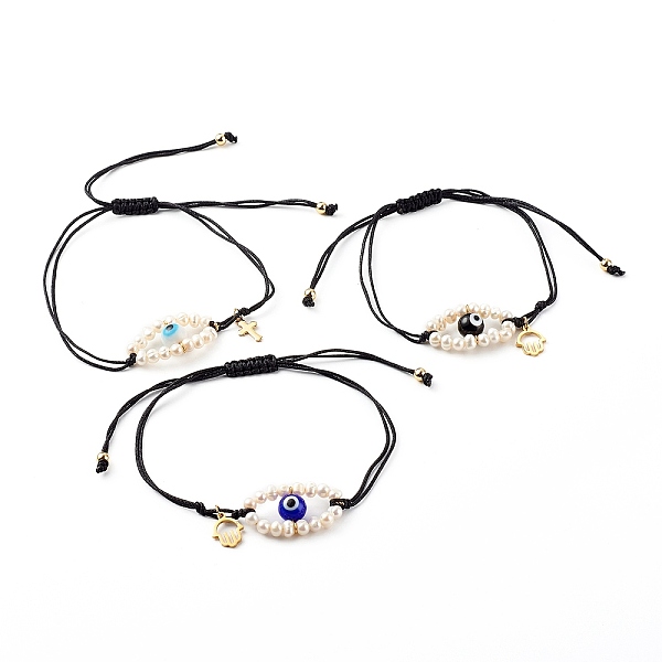 PandaHall Adjustable Nylon Thread Braided Bead Bracelets, with 304 Stainless Steel Charms and Evil Eye Natural Freshwater Shell Beads, Evil... Price: $16.64 | PandaHall