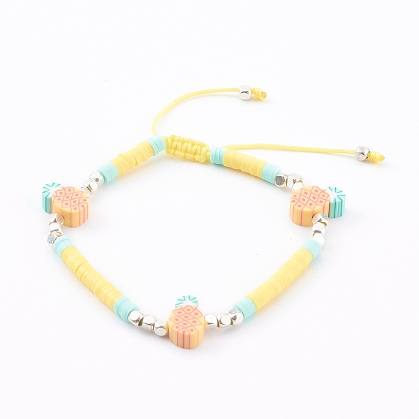 PandaHall Adjustable Nylon Thread Braided Bead Bracelets, with Polymer Clay Heishi Beads and Brass Cube Beads, Pineapple, Silver Color... Price: $13.16 | PandaHall