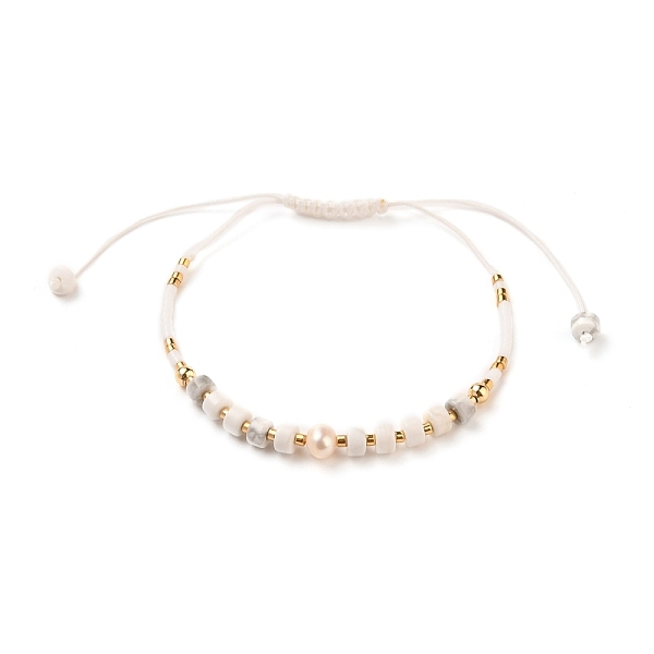 PandaHall Adjustable Nylon Thread Braided Bead Bracelets, with Column Natural Howlite Beads, Natural Pearl Beads, Glass Beads and Brass... Price: $27.45 | PandaHall