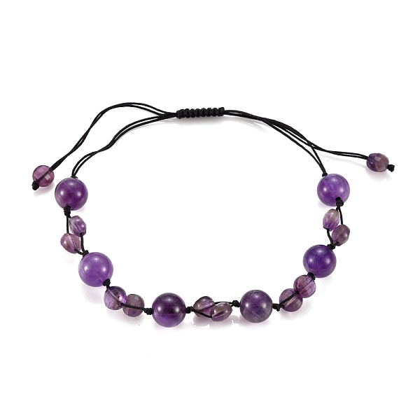 PandaHall Adjustable Nylon Thread Braided Bead Bracelets, with Natural Amethyst Beads, Round & Flat Round, Inner Diameter: 1-1/2~3-1/2 inch... Price: $15.71 | PandaHall