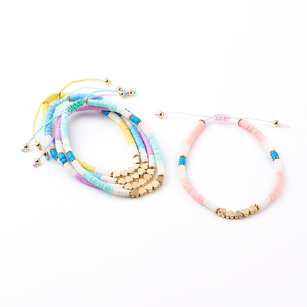 PandaHall Adjustable Nylon Thread Braided Beads Bracelets, with Polymer Clay Heishi Beads and Brass Heart Beads, Golden, Mixed Color, Inner... Price: $13.02 | PandaHall