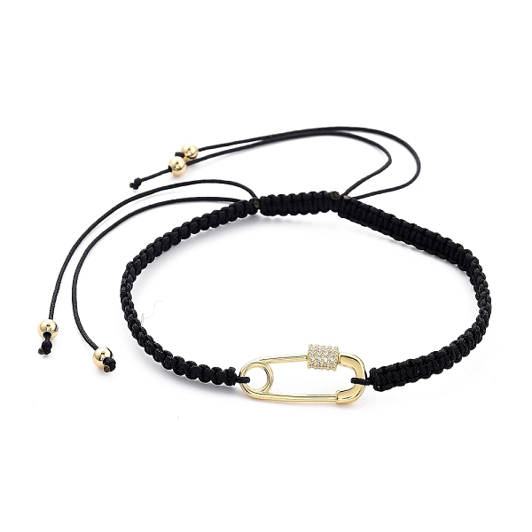 PandaHall Adjustable Nylon Thread Braided Bead Bracelets, with Brass Micro Pave Clear Cubic Zirconia Links and Brass Beads, Safety Pin Shape... Price: $14.55 | PandaHall