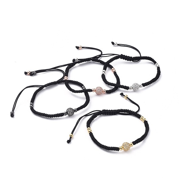 PandaHall Adjustable Nylon Thread Braided Bead Bracelets, with Brass Micro Pave Cubic Zirconia Beads and Brass Beads, Round, Black, Mixed... Price: $41.47 | PandaHall