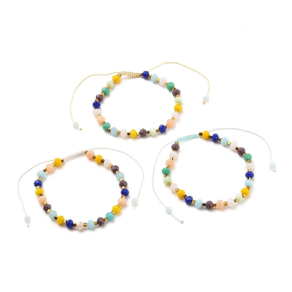 PandaHall Adjustable Nylon Thread Braided Bead Bracelets, with Glass Beads, Faceted, Rondelle & Cube, Mixed Color, Inner Diameter: 2~3-7/8... Price: $21.39 | PandaHall